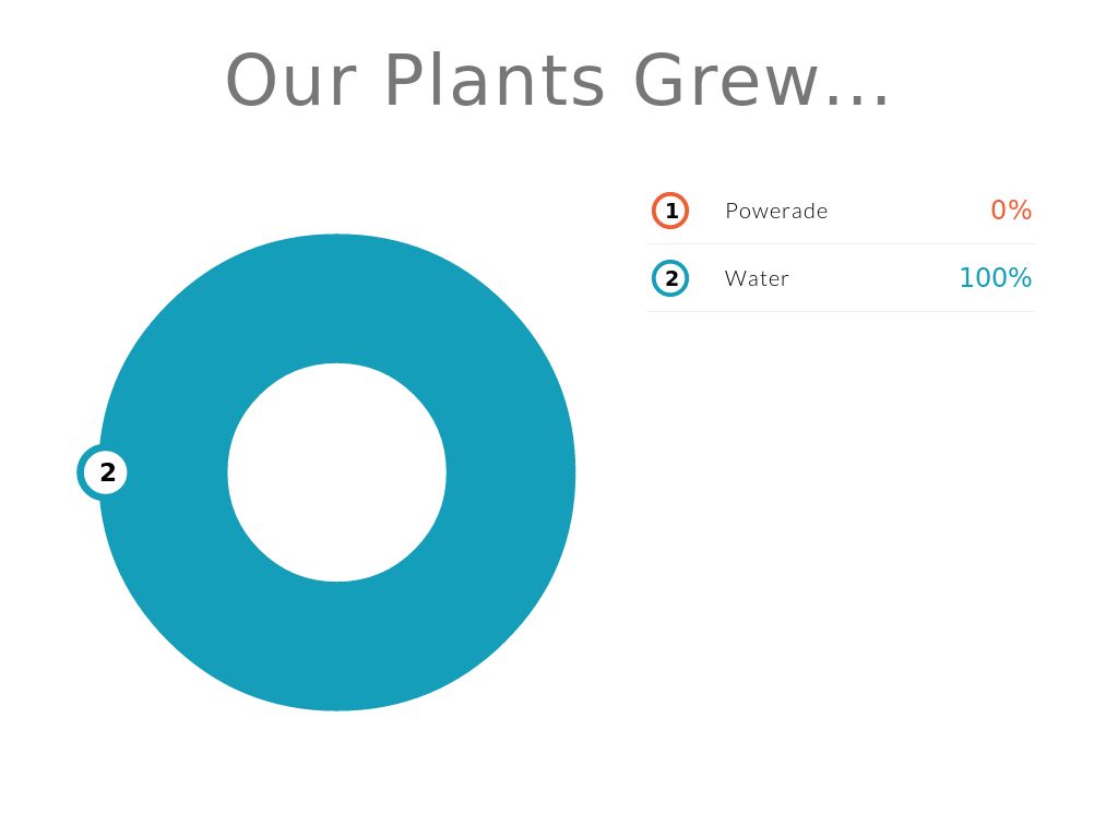 Our Powerade plant didn't grow at all. Our Water plant grew about 5 cm.