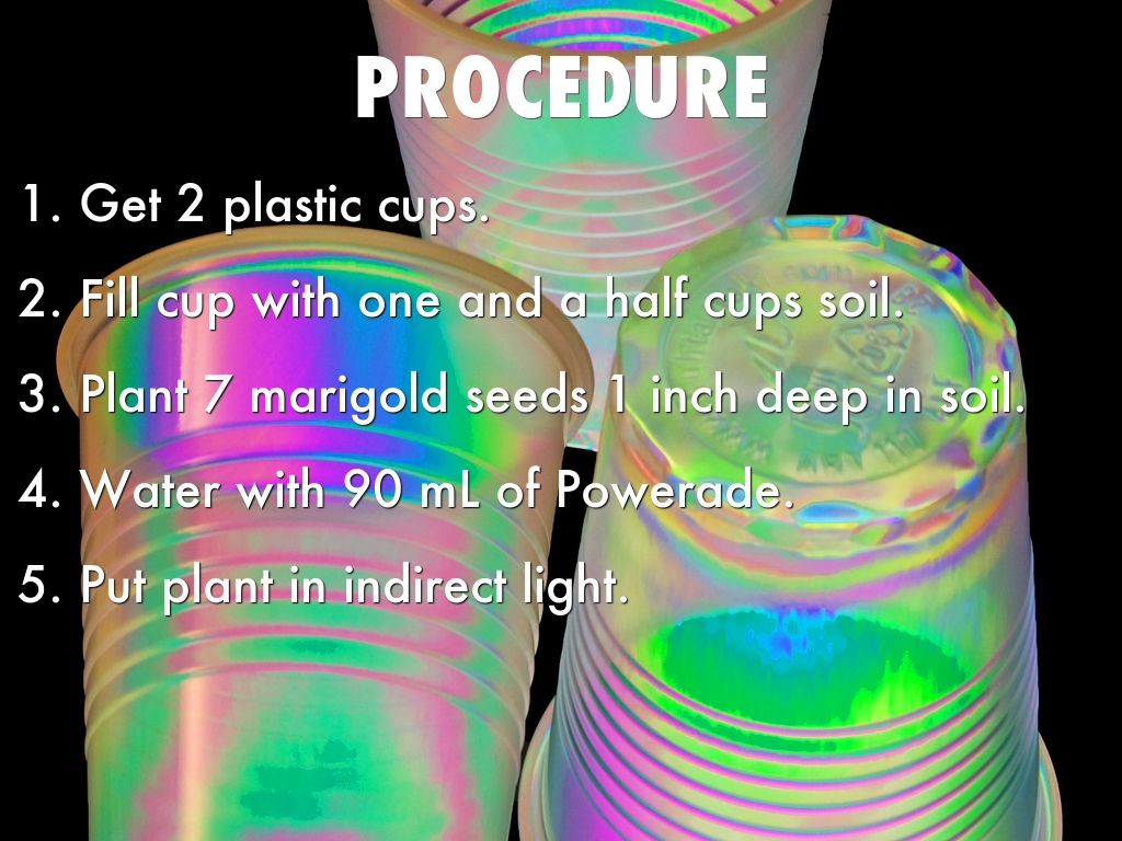We watered 7 marigold seeds w\ Powerade. We watered the others with water.