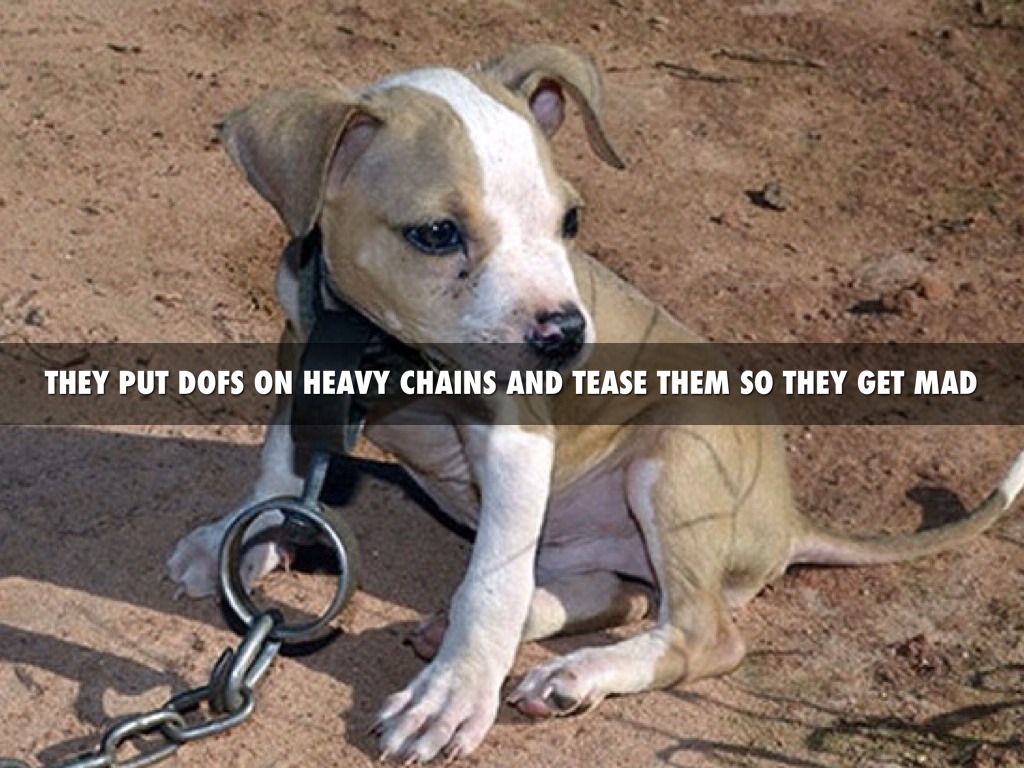 THEY PUT DOFS ON HEAVY CHAINS AND TEASE THEM SO THEY GET MAD