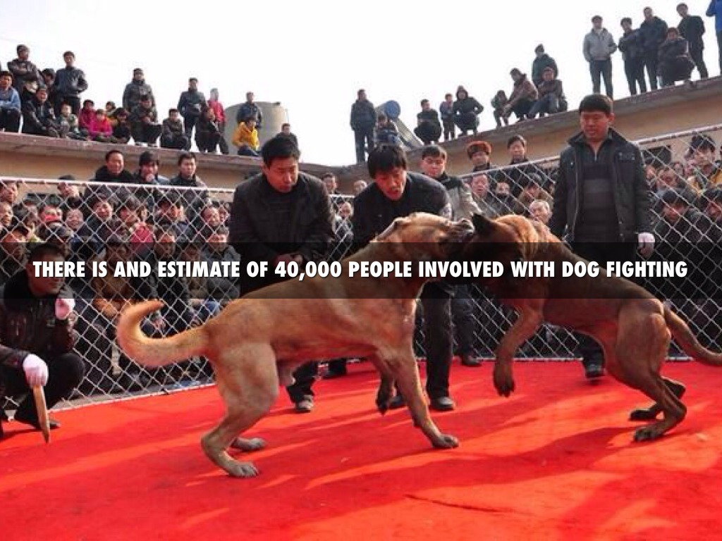 THERE IS AND ESTIMATE OF 40,000 PEOPLE INVOLVED WITH DOG FIGHTING