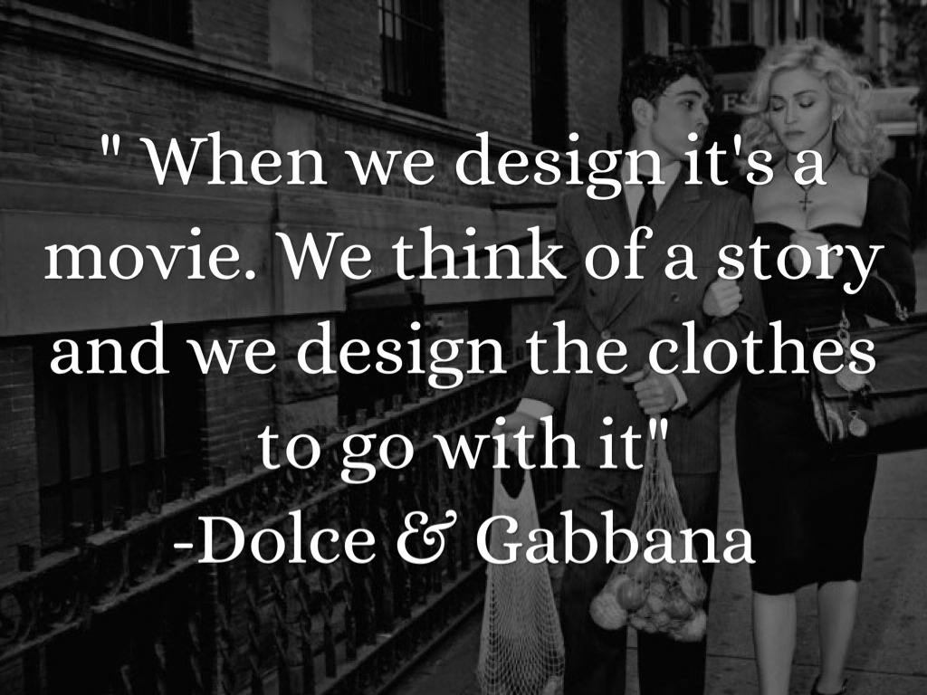 " When we design it's a movie. We think of a story and we design the clothes to go with it"