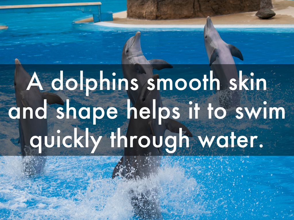 A dolphins smooth skin and shape helps it to swim quickly through water.