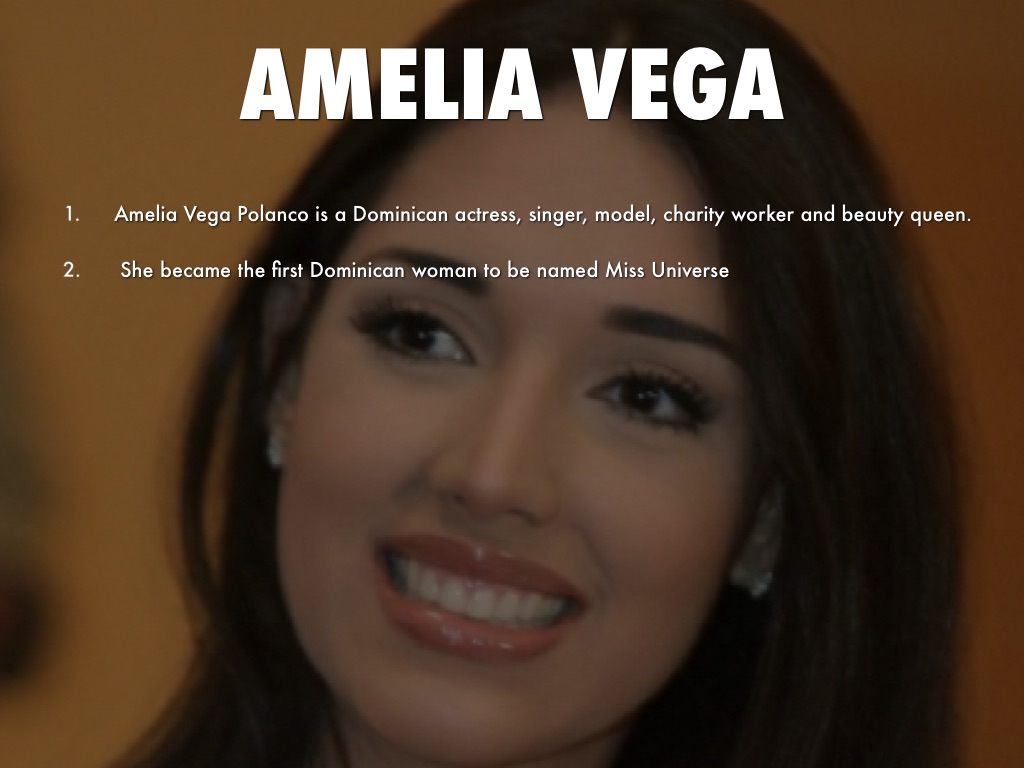 Amelia Vega Polanco is a Dominican actress, singer, model, charity worker and beauty queen.