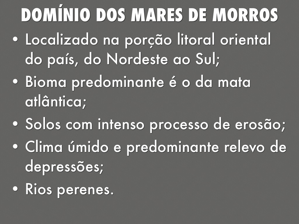 Localizado na porção litoral oriental do país, do Nordeste ao Sul;