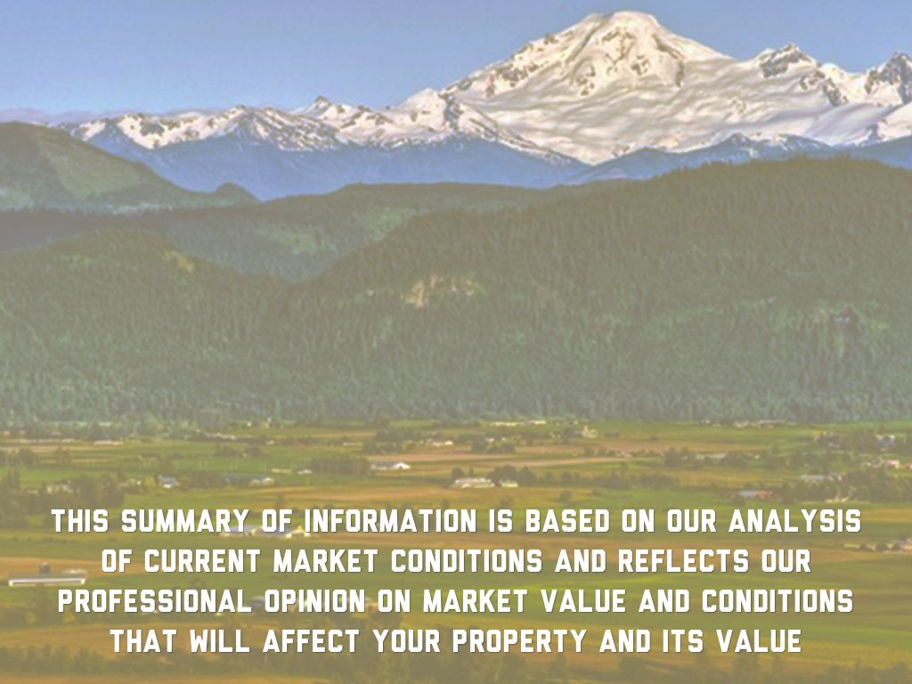 This summary of information is based on our analysis of current market conditions and reflects our professional opinion on market value and conditions that will affect your property and its value