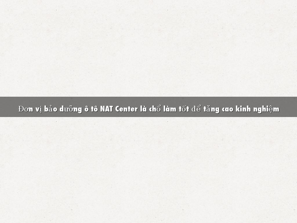 Sau một năm làm việc ở cơ sở bảo dưỡng ô tô NAT Center, người kỹ thuật viên còn bỡ ngỡ ngày nào đã là một tay chuyên các kỹ năng sửa chữa từ phanh đến lốp, từ trong ra ngoài xe. Mọi đồng nghiệp đều rất vui mừng và ủng hộ anh trong các quy trình làm việc được anh thiết lập. Thời gian này, anh đã thăng chức lên tổ trưởng và dẫn dắt 5 đội viên chuyên về vấn đề chăm sóc dàn lạnh và chuyên vệ sinh xe cho khách hàng.