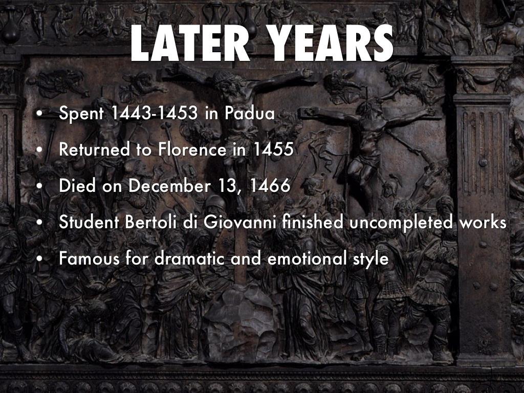 Spent time learning goldsmithing under Lorenzo Ghiberti
