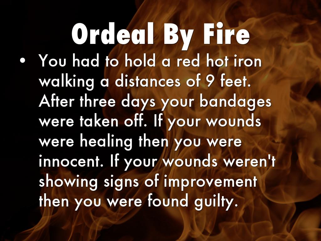 You had to hold a red hot iron walking a distances of 9 feet. After three days your bandages were taken off. If your wounds were healing then you were innocent. If your wounds weren't showing signs of improvement then you were found guilty.
