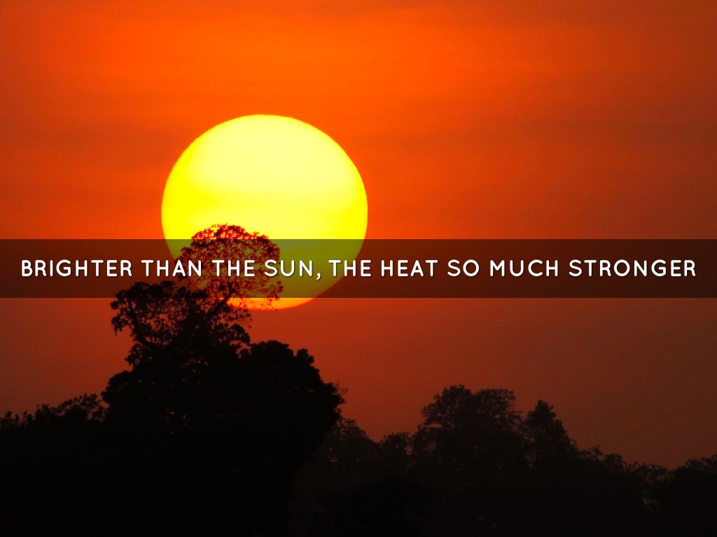 BRIGHTER THAN THE SUN, THE HEAT SO MUCH STRONGER
