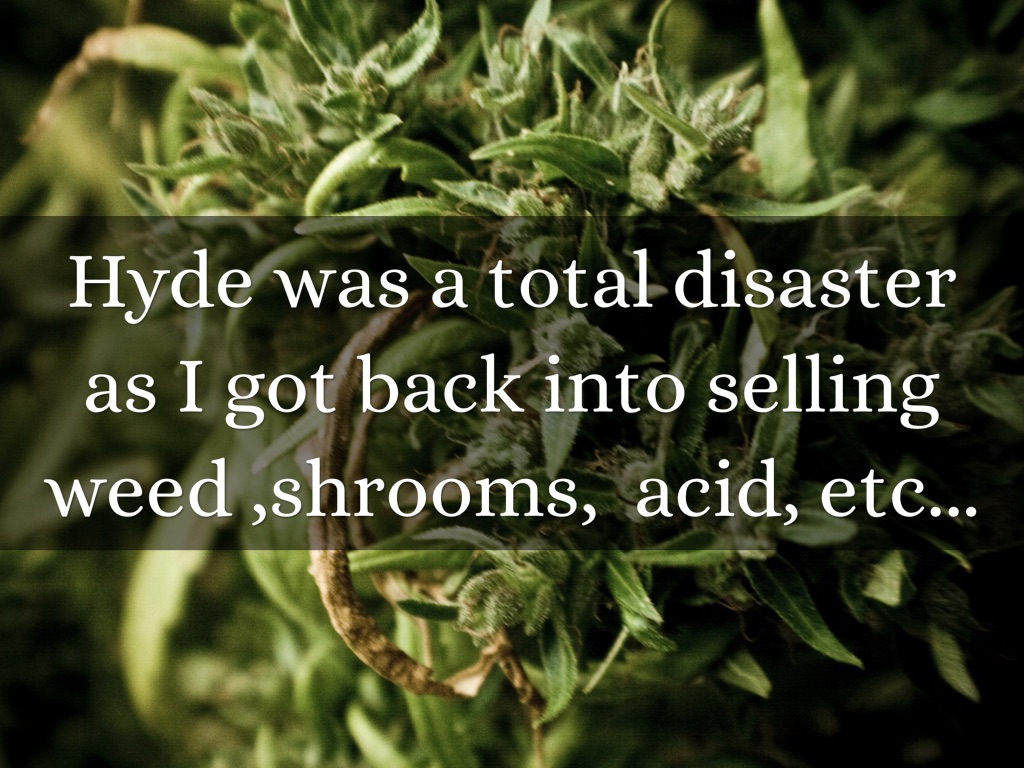 Hyde was a total disaster as I got back into selling weed ,shrooms, acid, etc...