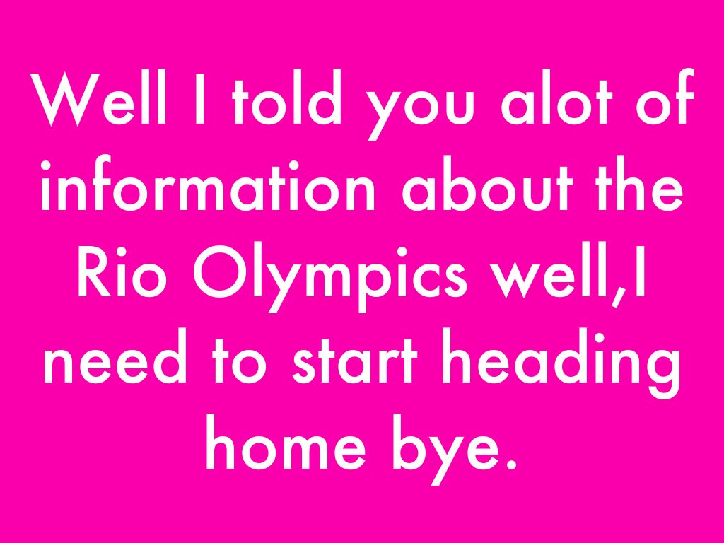 Well I told you alot of information about the Rio Olympics well,I need to start heading home bye.