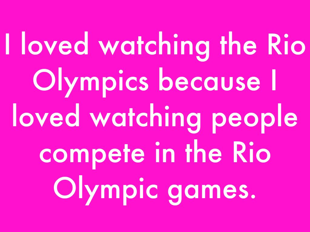 I loved watching the Rio Olympics because I loved watching people compete in the Rio Olympic games.