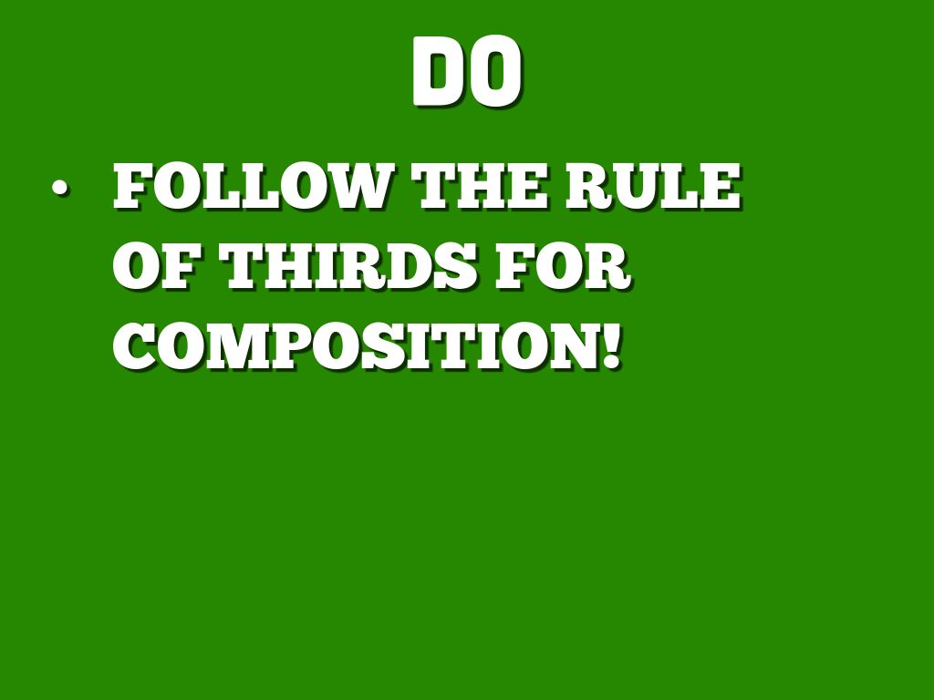 • FOLLOW THE RULE OF THIRDS FOR COMPOSITION!