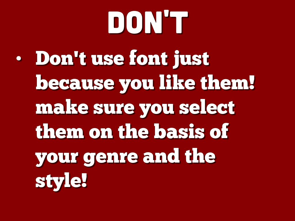 • Don't use font just because you like them! make sure you select them on the basis of your genre and the style!