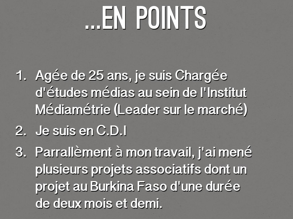 Agée de 25 ans, je suis Chargée d'études médias au sein de l'Institut Médiamétrie (Leader sur le marché)