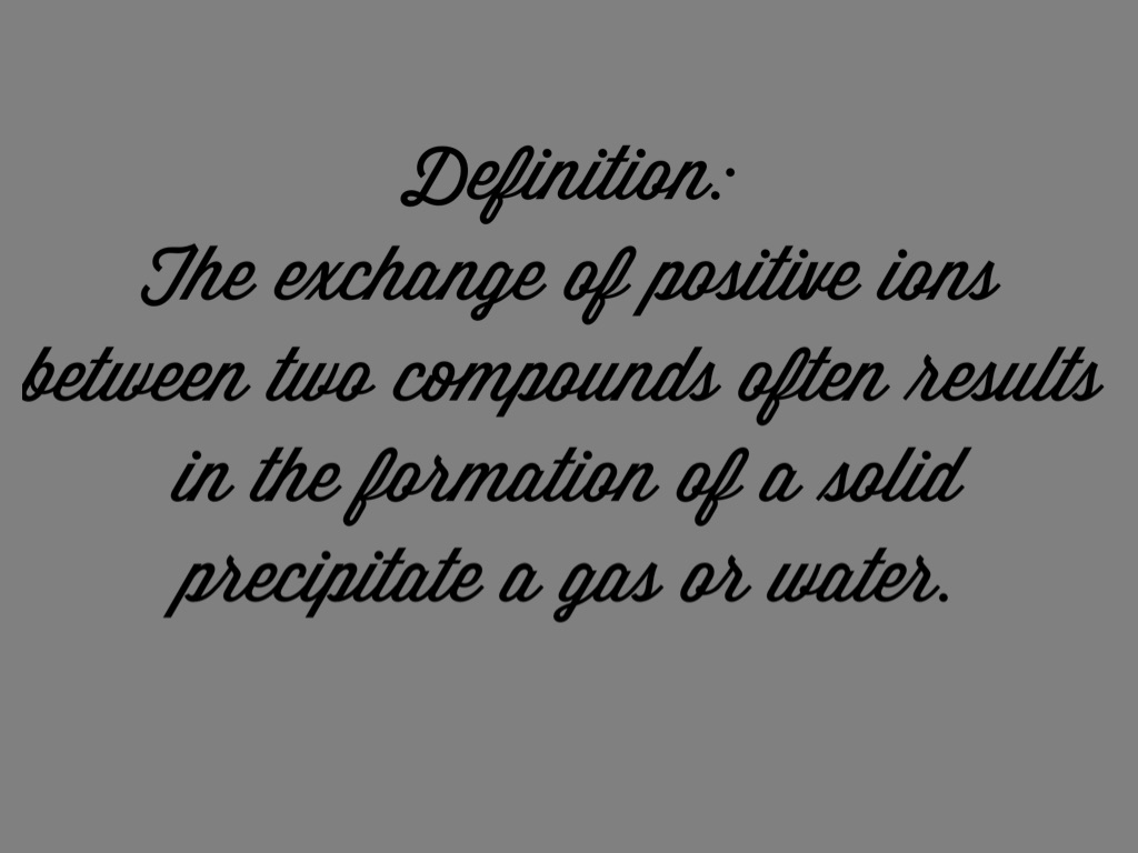 The exchange of positive ions between two compounds often results in the formation of a solid precipitate a gas or water.