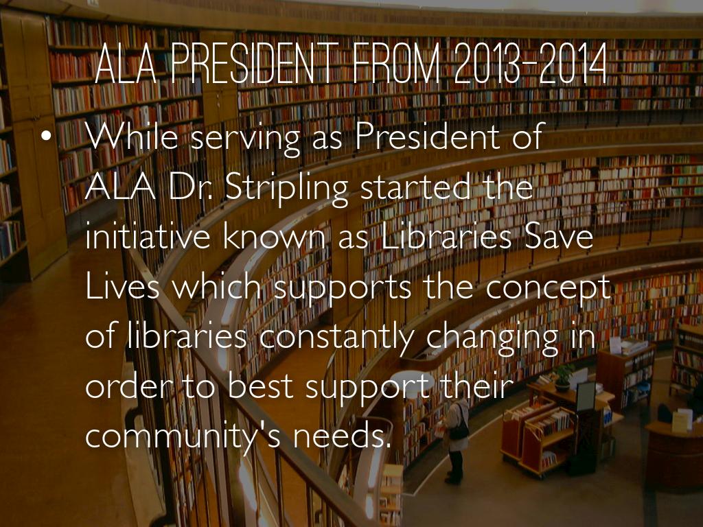 https://my.ischool.syr.edu/Uploads/CurriculumVitae/Stripling%20resume%201.1...Stripling, B.K. (2013). ALA President 2013-2014 Barbara Stripling. Retrieved from: