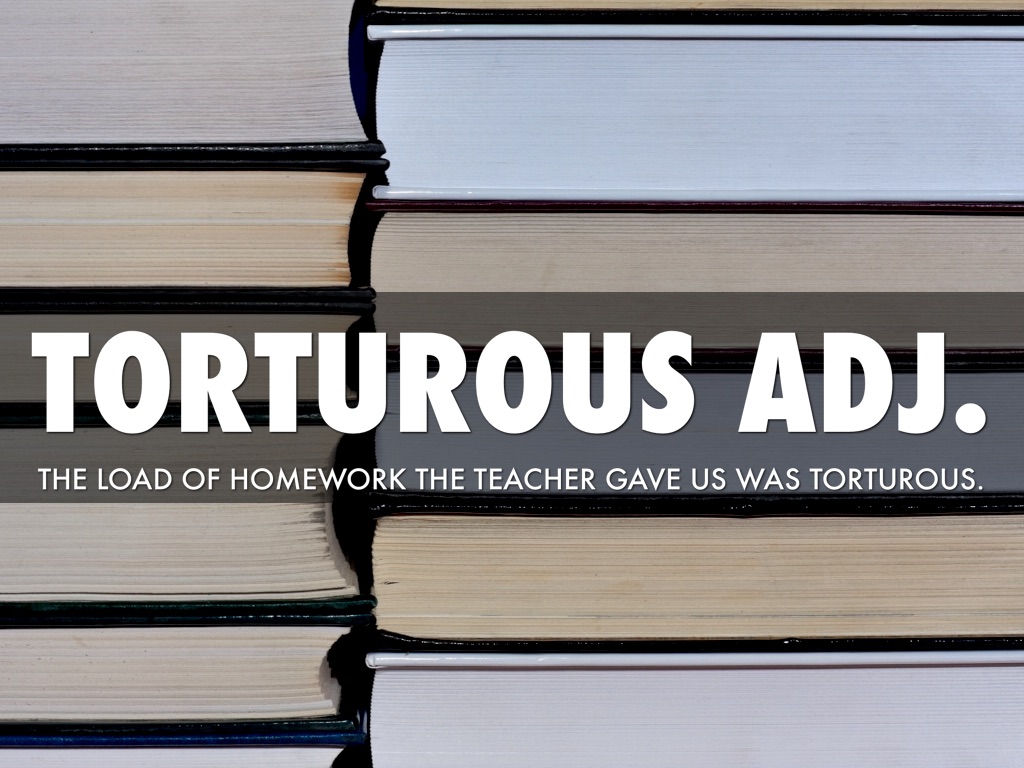 THE LOAD OF HOMEWORK THE TEACHER GAVE US WAS TORTUROUS.
