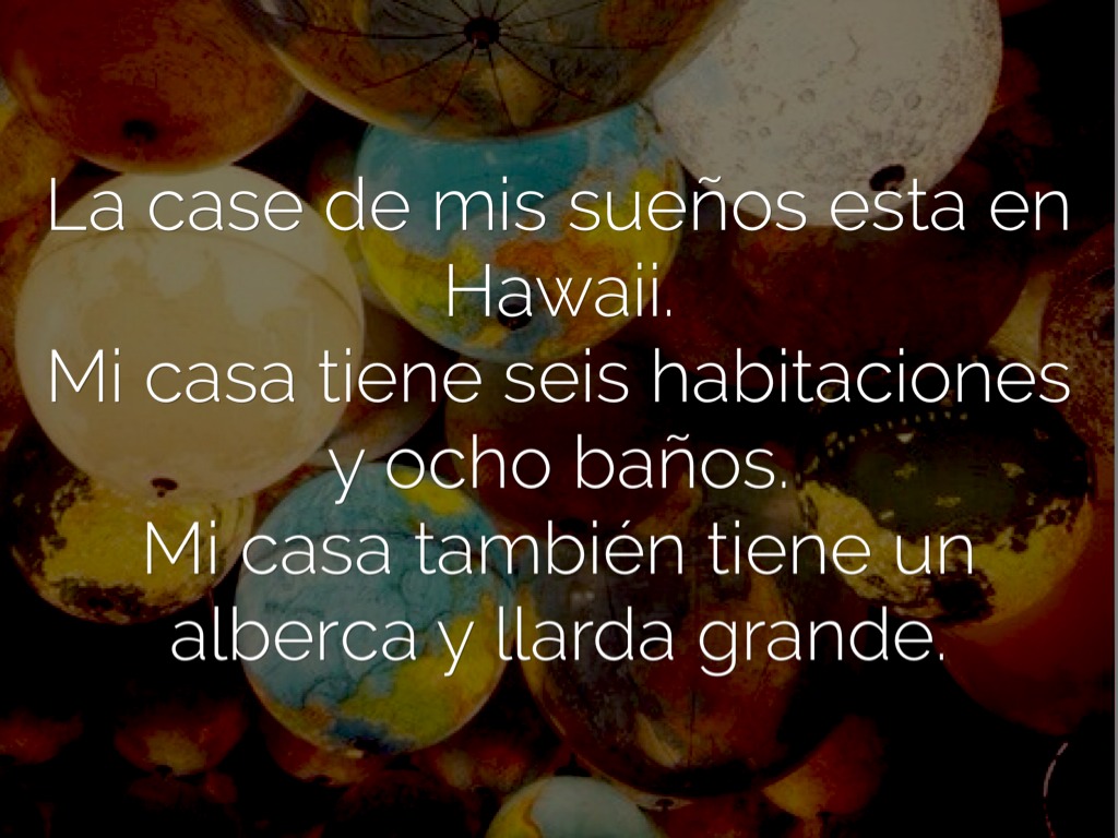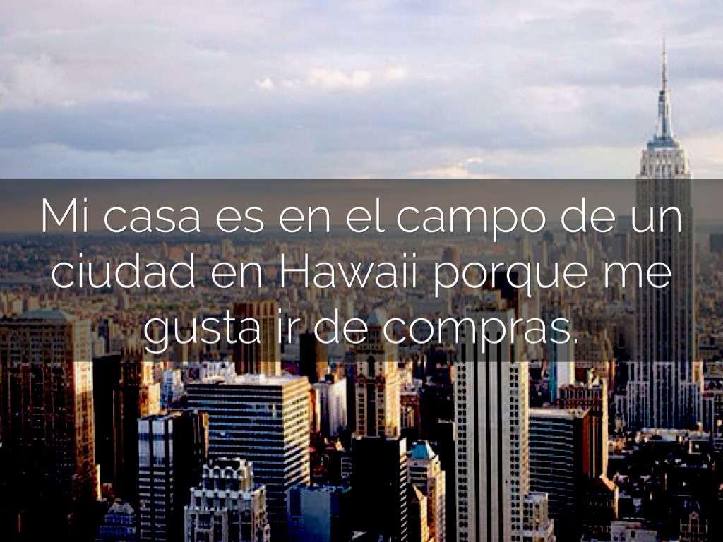 Mi casa es en el campo de un ciudad en Hawaii porque me gusta ir de compras.