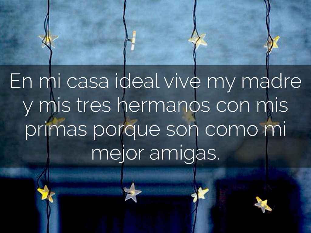 En mi casa ideal vive my madre y mis tres hermanos con mis primas porque son como mi mejor amigas.