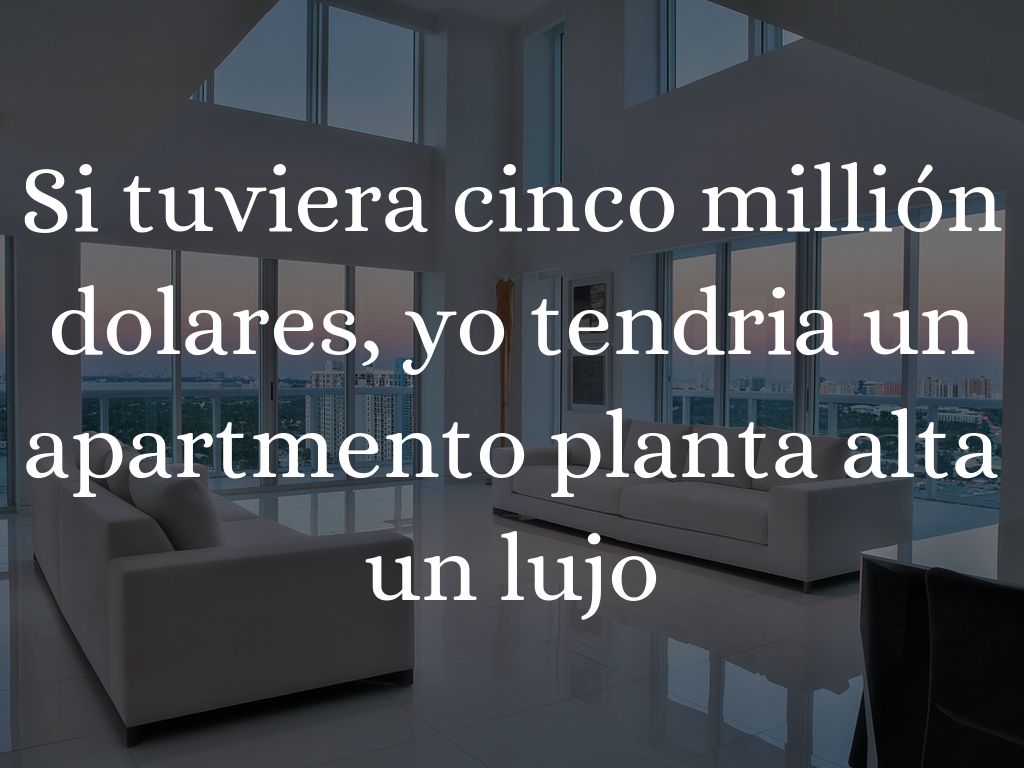 Si tuviera cinco millión dolares, yo tendria un apartmento planta alta un lujo