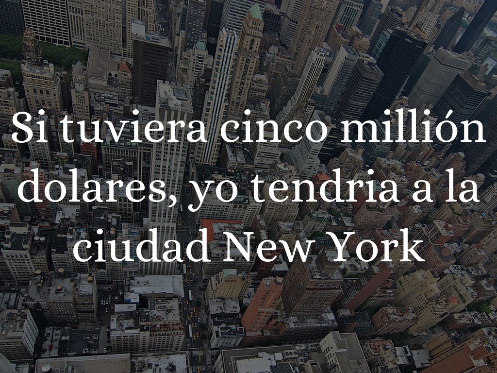 Si tuviera cinco millión dolares, yo tendria a la ciudad New York