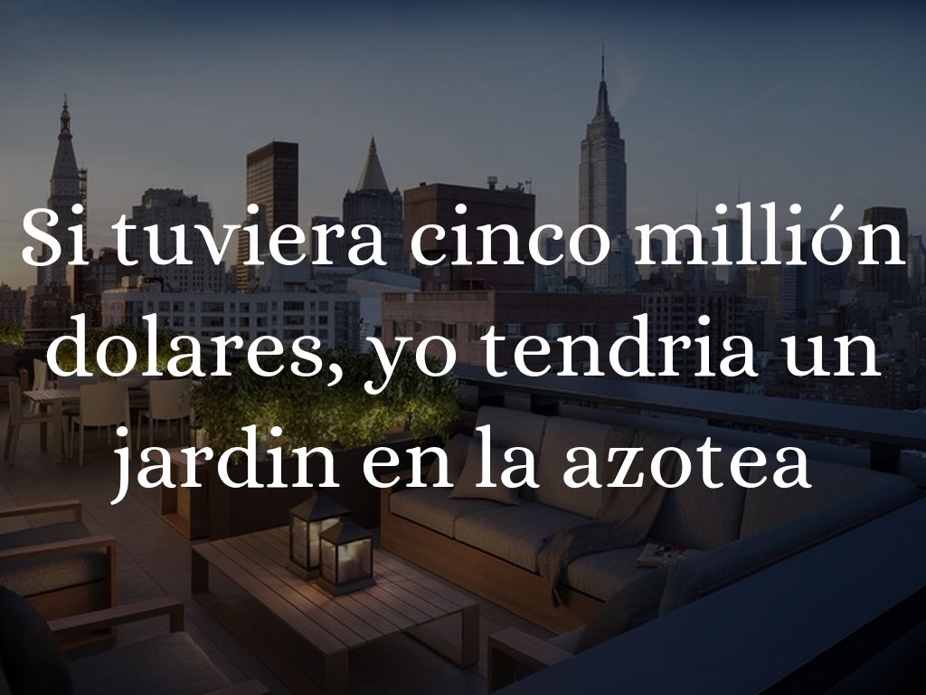 Si tuviera cinco millión dolares, yo tendria un jardin en la azotea