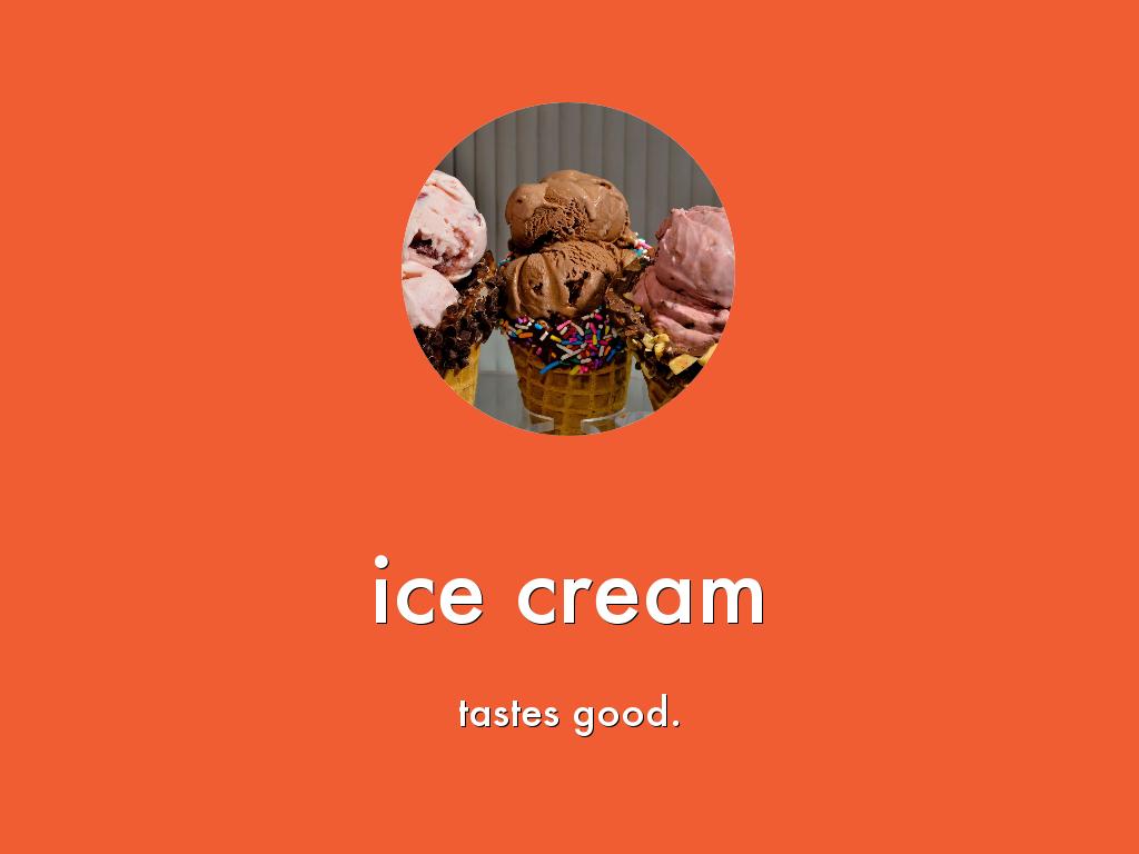 let's use ice cream as an example. ice cream is a good way to express emotion. mixing and matching flavors, i mean. the way it works has to do with the ability to customize the way your ice cream looks. you can have a bowl, or a waffle cone. you can have sprinkles, or you could have chocolate syrup. with the ability to combine toppings, and flavors. personal favorite; french vanilla with caramel syrup in a waffle cone. plus, it is what fuels the dreams of young children.