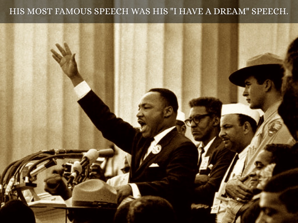HIS MOST FAMOUS SPEECH WAS HIS "I HAVE A DREAM" SPEECH.