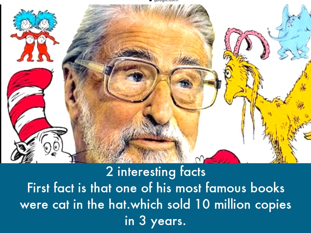 First fact is that one of his most famous books were cat in the hat.which sold 10 million copies in 3 years.