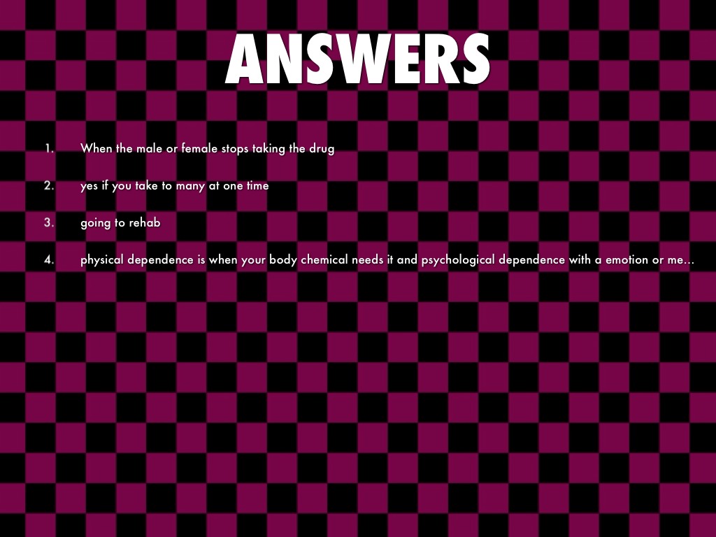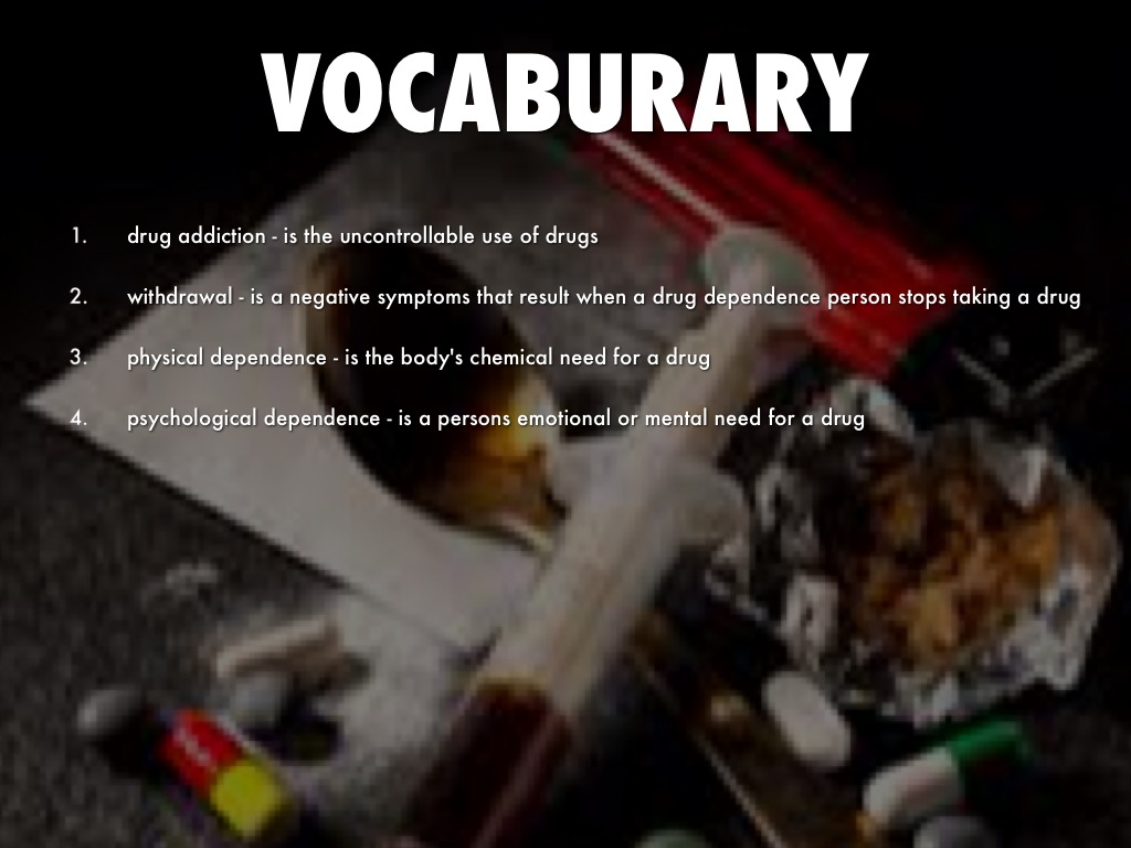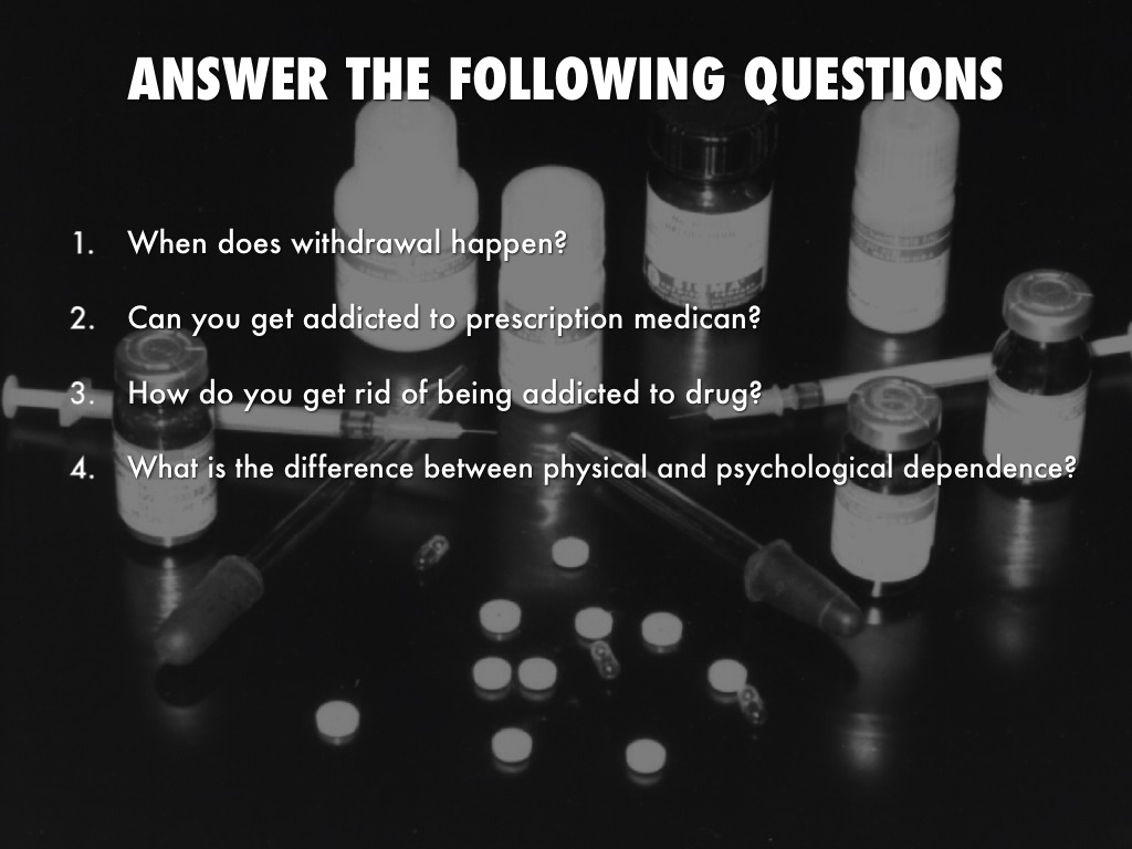 physical dependence is when your body chemical needs it and psychological dependence with a emotion or mental need for a drug