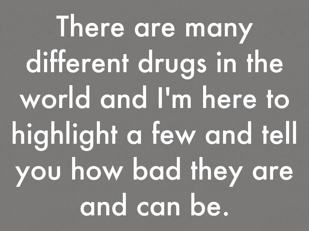 There are many different drugs in the world and I'm here to highlight a few and tell you how bad they are and can be.
