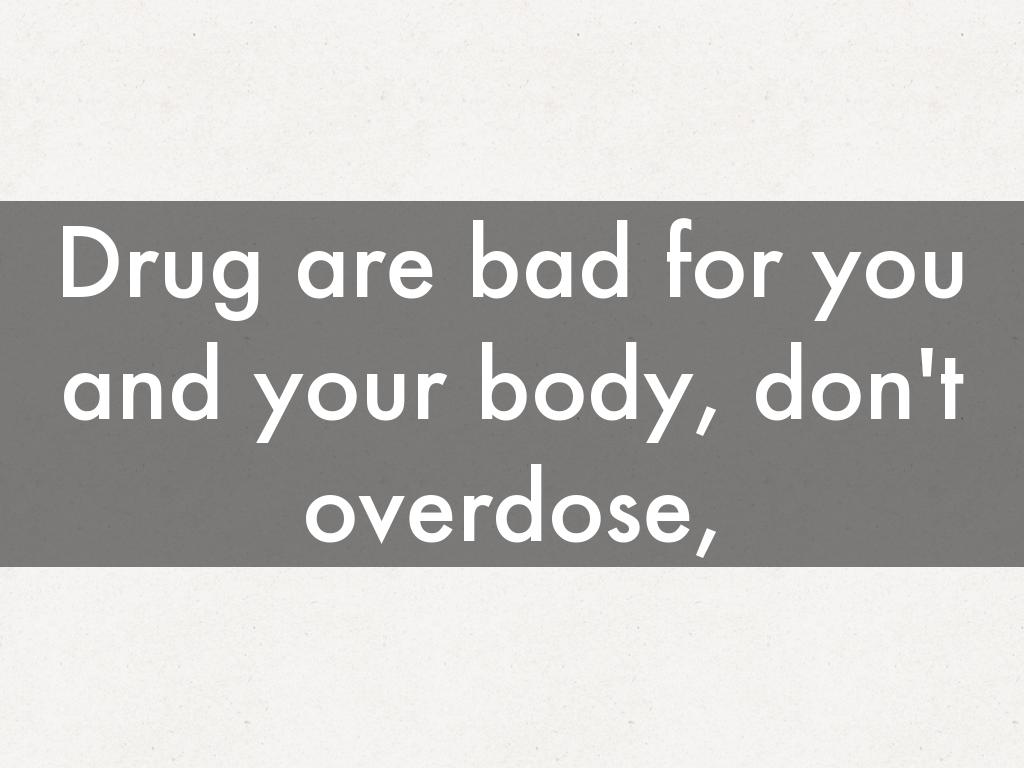 Drug are bad for you and your body, don't overdose, misuse, or over use drugs to cope