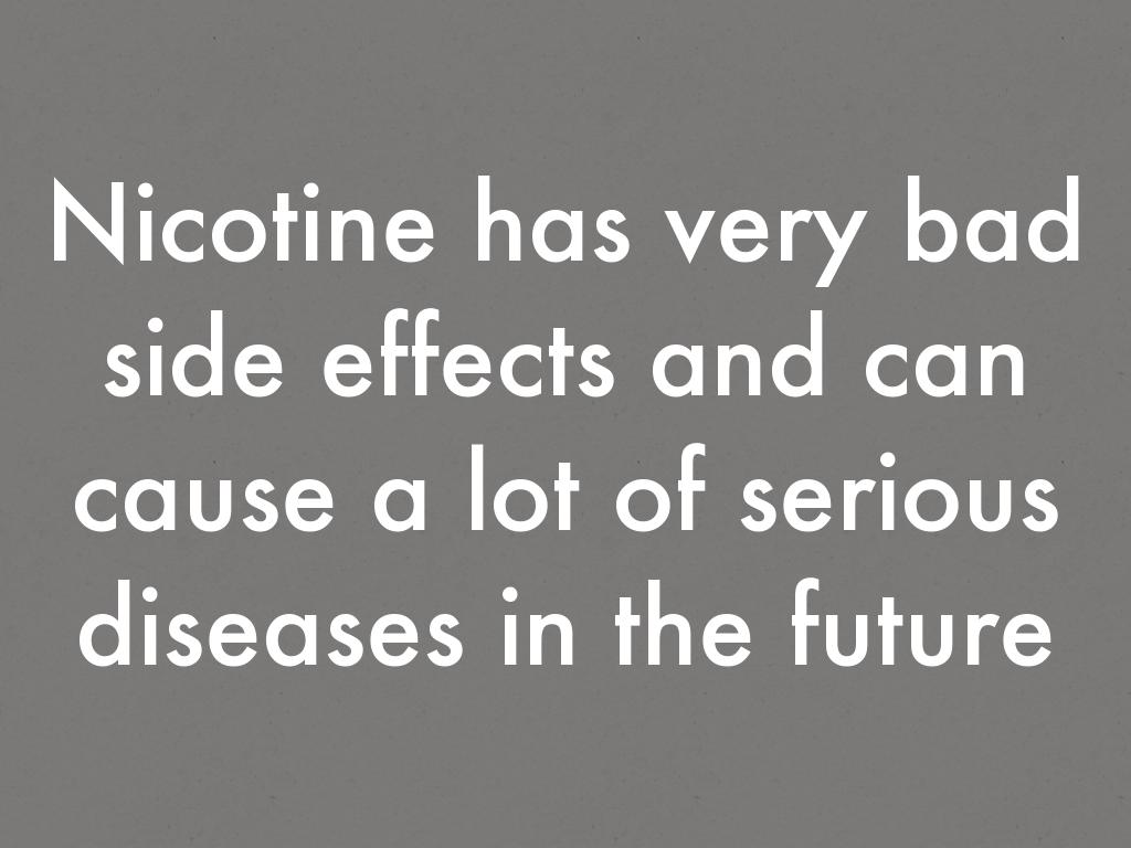 Nicotine has very bad side effects and can cause a lot of serious diseases in the future