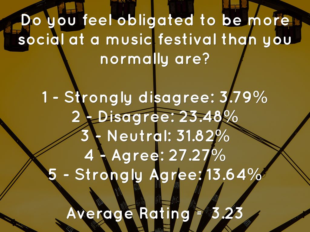To measure participants’ engagement at music festivals, we asked three nominal scale questions