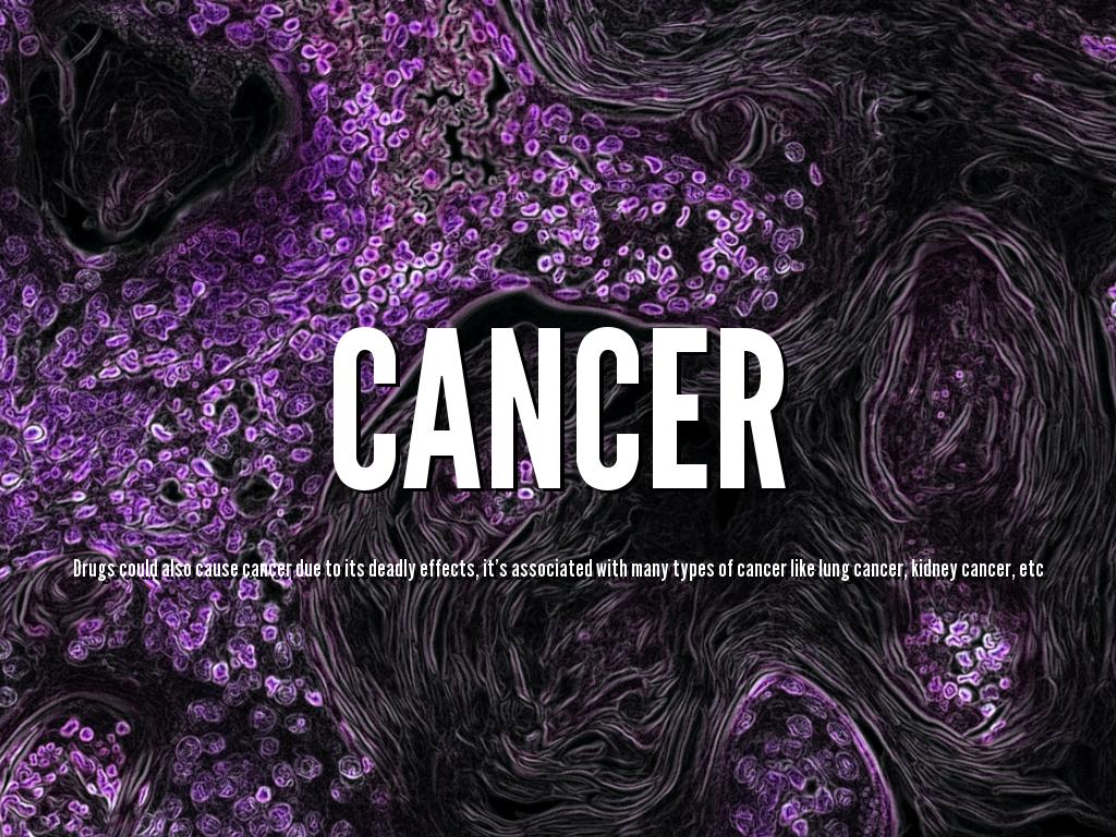 Drugs could also cause cancer due to its deadly effects, it's associated with many types of cancer like lung cancer, kidney cancer, etc