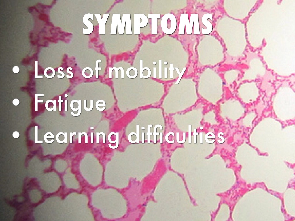 The upper arms and legs are usually affected first but the brain, throat,heart chest muscles, stomach, intestines, and spine can also be affected