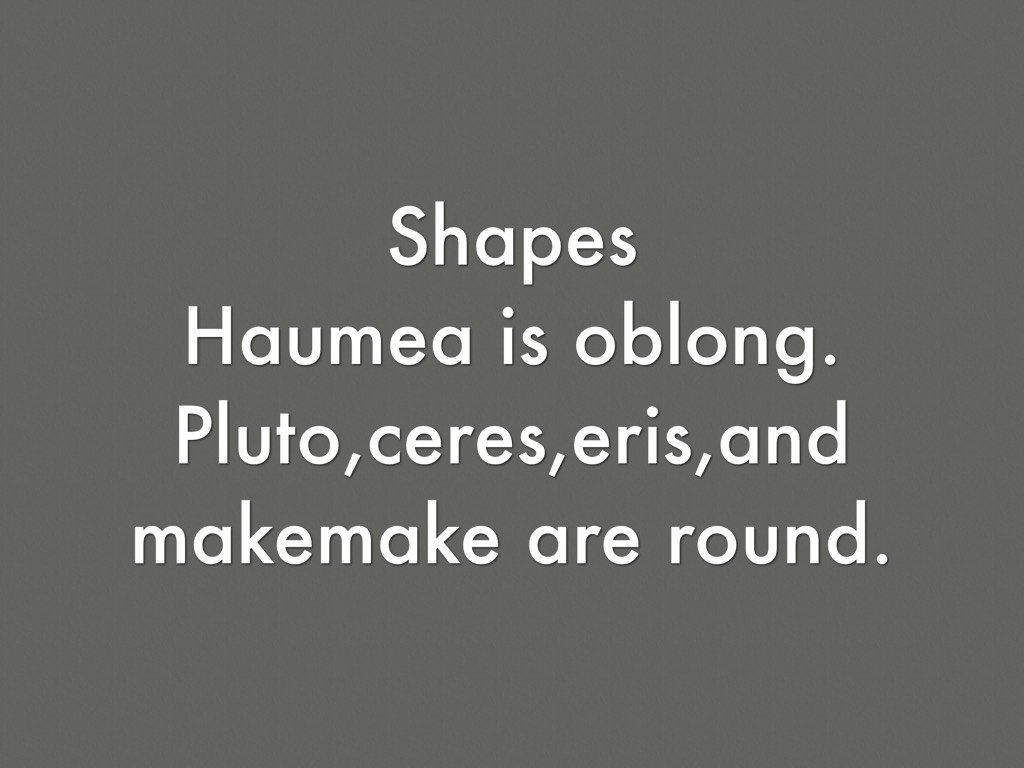 Haumea is oblong. Pluto,ceres,eris,and makemake are round.