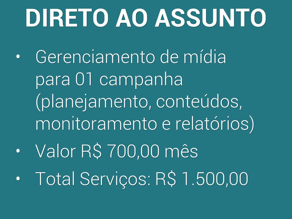 Gerenciamento de mídia para 01 campanha (planejamento, conteúdos, monitoramento e relatórios)