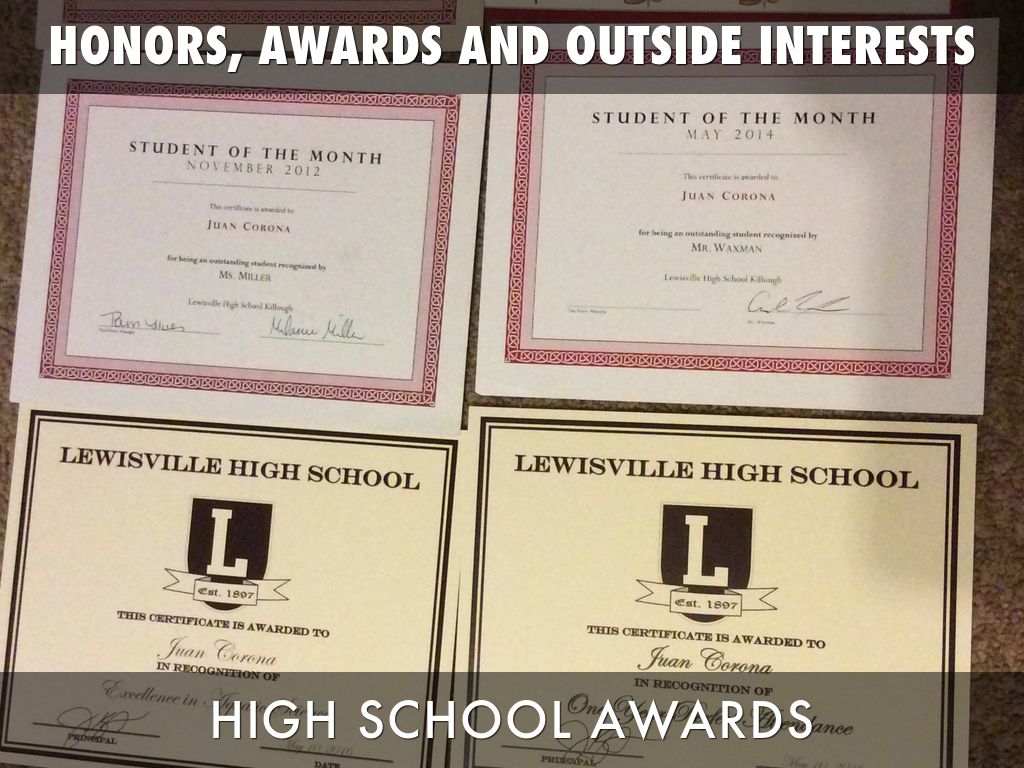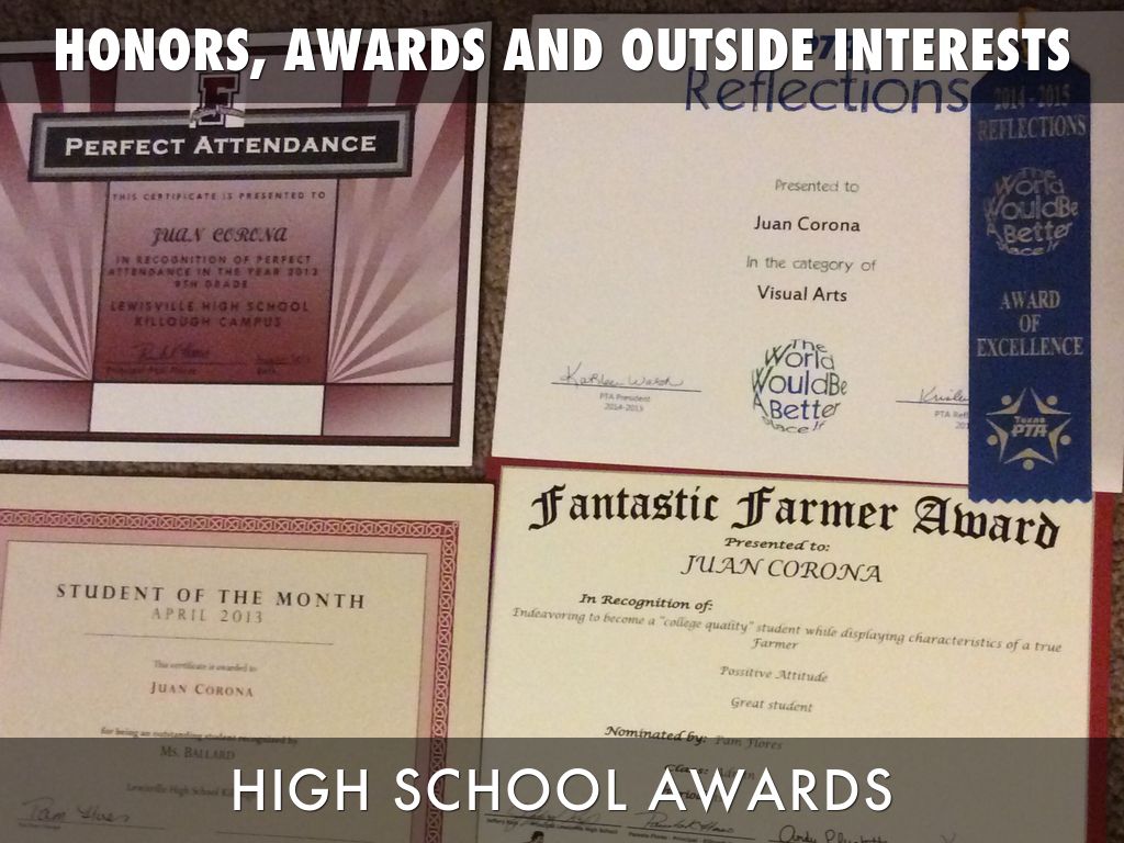 HONORS, AWARDS AND OUTSIDE INTERESTS