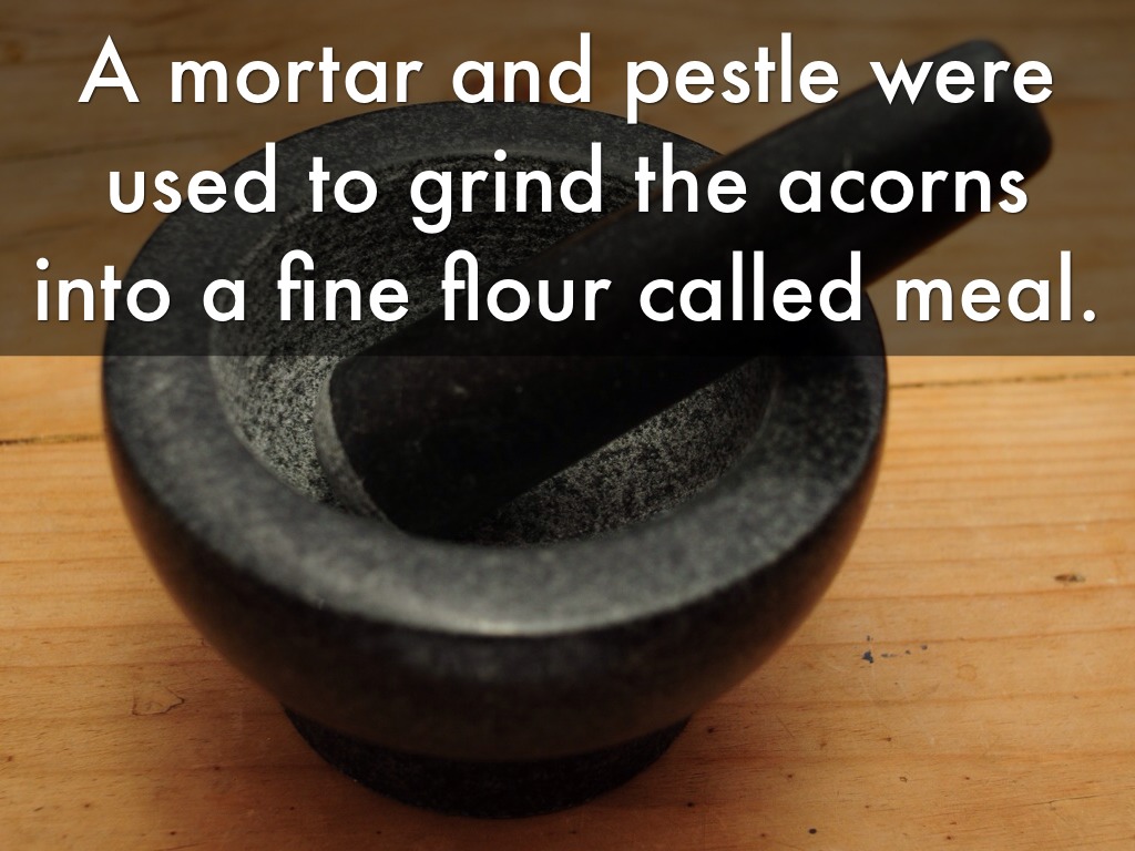 A mortar and pestle were used to grind the acorns into a fine flour called meal.