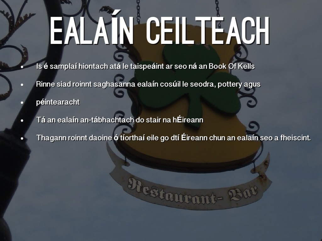 Is é samplaí hiontach atá le taispeáint ar seo ná an Book Of Kells