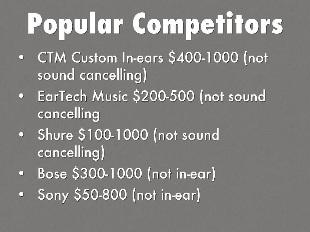 • CTM Custom In-ears $400-1000 (not sound cancelling)
