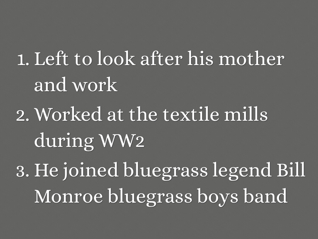 He joined bluegrass legend Bill Monroe bluegrass boys band