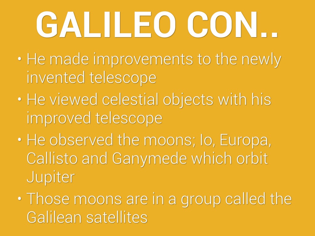 He observed the moons; Io, Europa, Callisto and Ganymede which orbit Jupiter