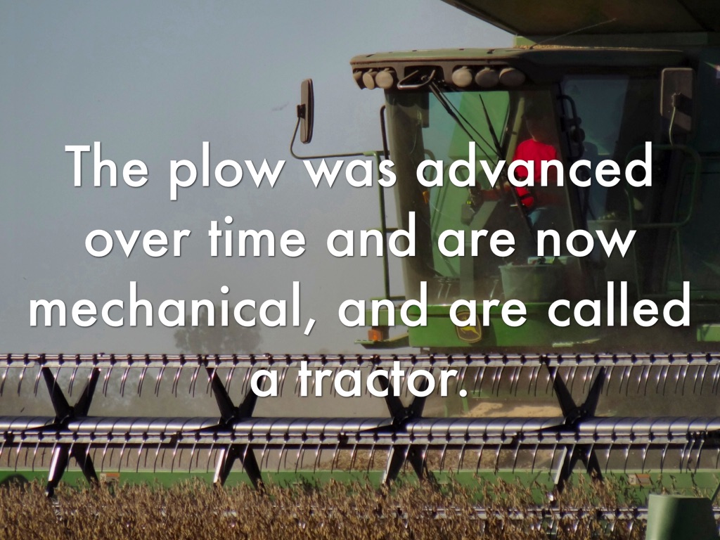The plow was advanced over time and are now mechanical, and are called a tractor.