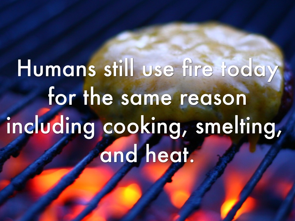 Humans still use fire today for the same reason including cooking, smelting, and heat.