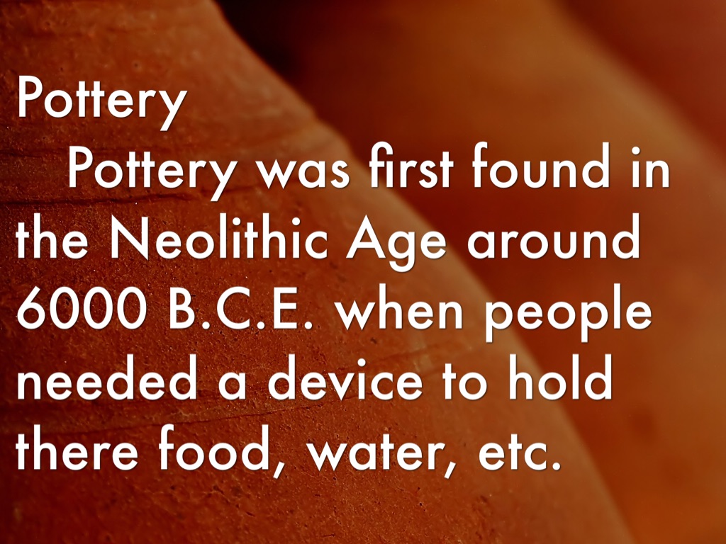 Pottery was first found in the Neolithic Age around 6000 B.C.E. when people needed a device to hold there food, water, etc.