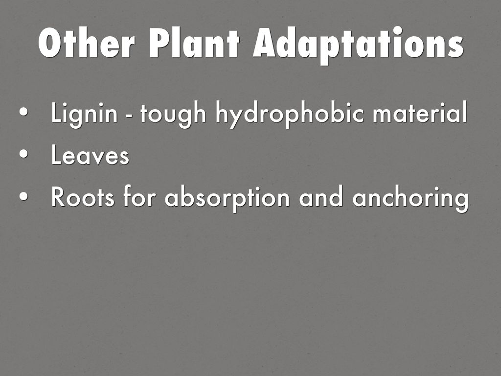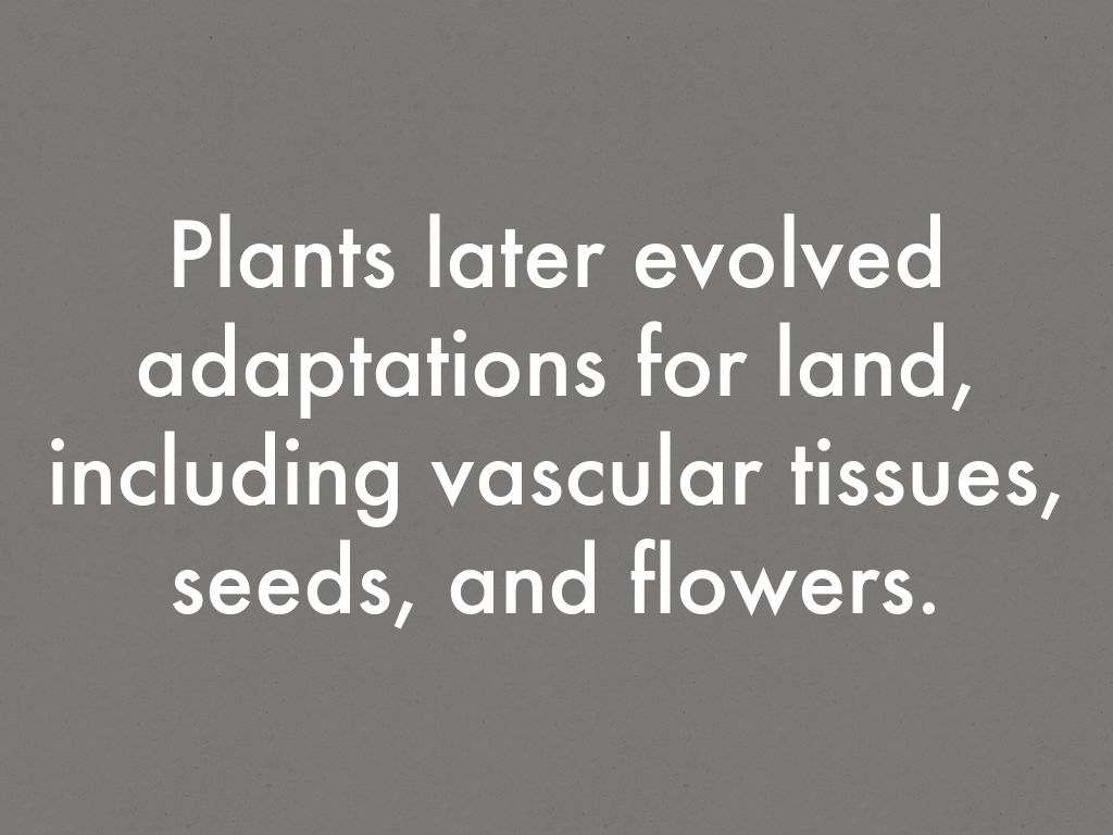 Plants later evolved adaptations for land, including vascular tissues, seeds, and flowers.