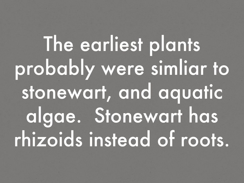 The earliest plants probably were simliar to stonewart, and aquatic algae. Stonewart has rhizoids instead of roots.